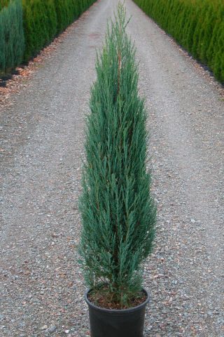 Esta es una variedad mejorada del arbusto anterior. La corona es densa, el color es brillante. Forma columnar. Altura 5 m, ancho 0,7 m Los brotes con agujas escamosas se presionan contra el tronco. Las ramas crecen casi desde el fondo. El color es azul profundo. La planta tolera las heladas de manera persistente, no es caprichoso cuidarla. Crece bien en áreas soleadas y con buen drenaje. Se rinde fácilmente a un corte de pelo en espiral. Combina bien con otros cultivos, ocupa poco espacio en el sitio.