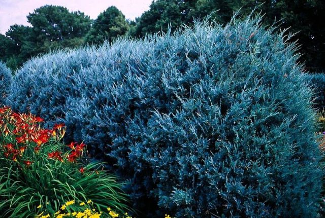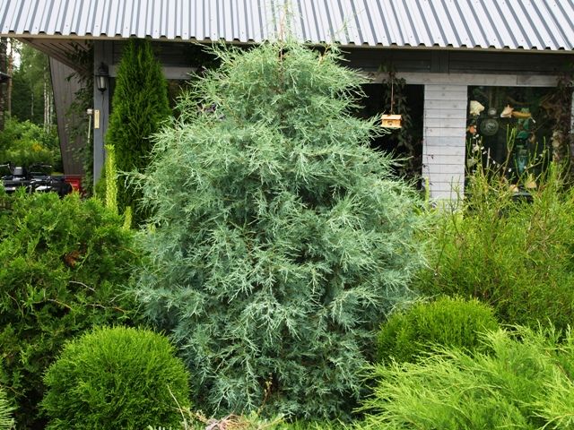 Los arbustos de coníferas decoran favorablemente el jardín, la cabaña de verano y los callejones del parque. Crean un paisaje tranquilo y elegante. Los enebros azules verticales se representan mejor como un seto, lo que le permitirá disfrazar el edificio, cercar a los vecinos.