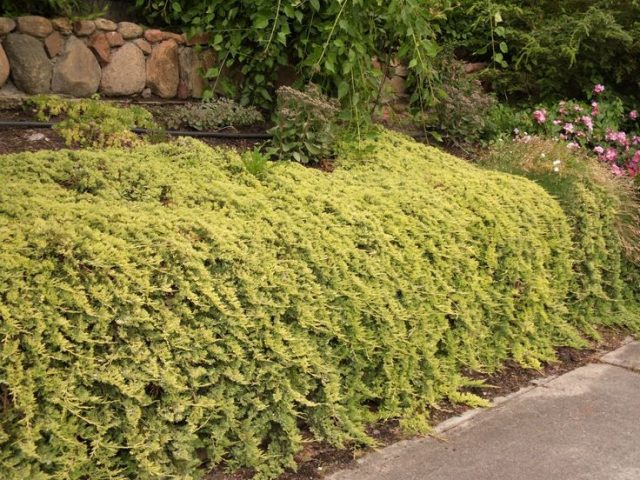Juniper Golden Carpet pertenece a las plantas resistentes a las heladas, pero ama los lugares soleados para plantar.
