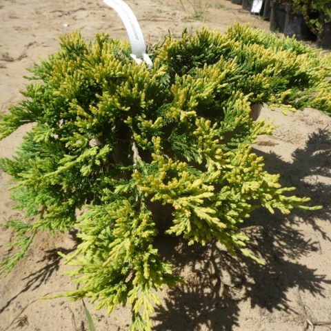 Esta variedad crece lentamente 10 cm por año. Tiene pequeñas agujas escamosas de color dorado. Arriba, el color de las agujas es amarillo dorado y debajo es amarillo verdoso.
