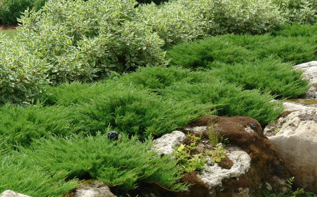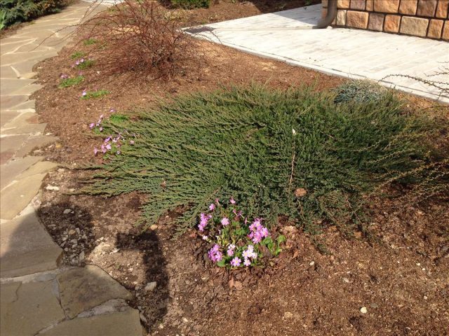 - en macizos de flores, el enebro forma una alfombra debajo de la cual no crecen malas hierbas, es un trasfondo común para cultivos en flor;