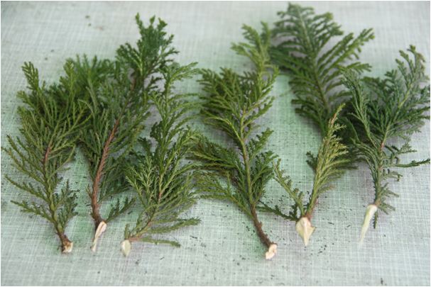 - Esquejes semilignificados. La forma más común. En la primavera, se corta un brote joven de un enebro con un talón (fragmento madre), se planta en un sustrato preparado, donde luego echa raíces. La temperatura debe ser al principio de +15-18 ° C, luego aumentar a +20-23 ° C.