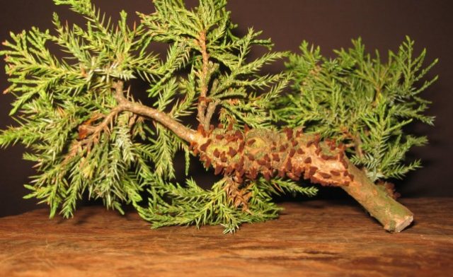 - Escala de enebro: el parásito pertenece a los insectos chupadores, sus larvas se adhieren a las agujas, por lo que se seca y muere;