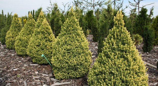 Las coníferas, incluida la picea canadiense Rainbow End, se alimentan mejor no con fertilizantes comunes, sino con fertilizantes especializados.Ahora a la venta hay medicamentos domésticos efectivos y económicos. Al comprar y usar, debe prestar atención a la temporada para la que están destinados: los de primavera contienen mayores dosis de nitrógeno, los de otoño: fósforo y potasio.