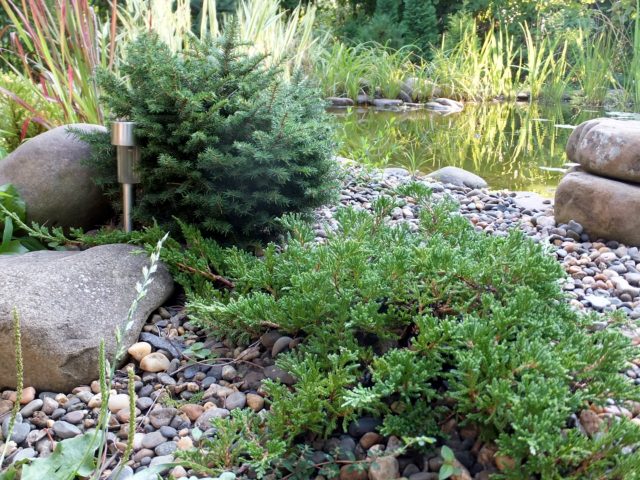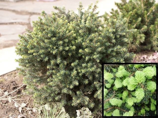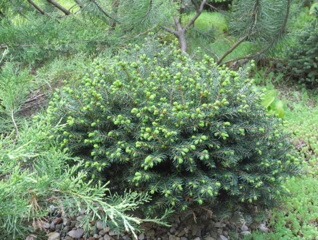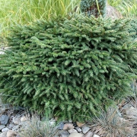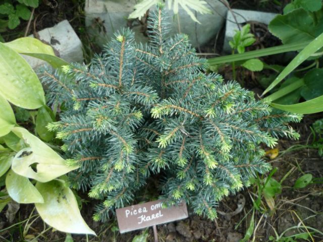 La variedad Karel es enana, y con un corte de pelo se le puede dar forma de nido, almohada, bola o hemisferio. La planta se ve muy bien en rocallas, jardines de rocas, en un macizo de flores con flores que no aman la humedad y prefieren suelos ácidos. Los vecinos ideales para el abeto serbio Karel en el diseño del paisaje serán: