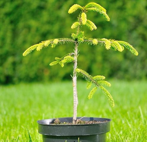 Para plantar, puede elegir un árbol adulto cultivado en un recipiente, o excavado con un terrón de tierra atado con arpillera, o una plántula de 3-4 años con una corona que ha comenzado a formarse. Anteriormente, no tiene sentido comprar un abeto: es una sola rama, es imposible tener una idea aproximada del cumplimiento varietal. Todos los representantes de la especie tienen agujas cortas y crecimiento joven amarillo o dorado.