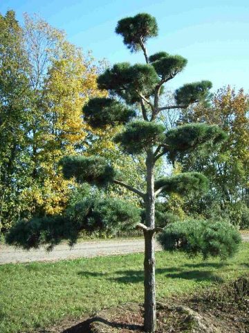 Se injerta la variedad ornamental de pino negro. La copa del árbol es estrecha, cónica, con brotes poderosos. Crece lentamente, a los 15 años alcanza los 2 m de altura, 0,5 m de ancho. A los 30 años, el crecimiento de la planta es de 20 m.