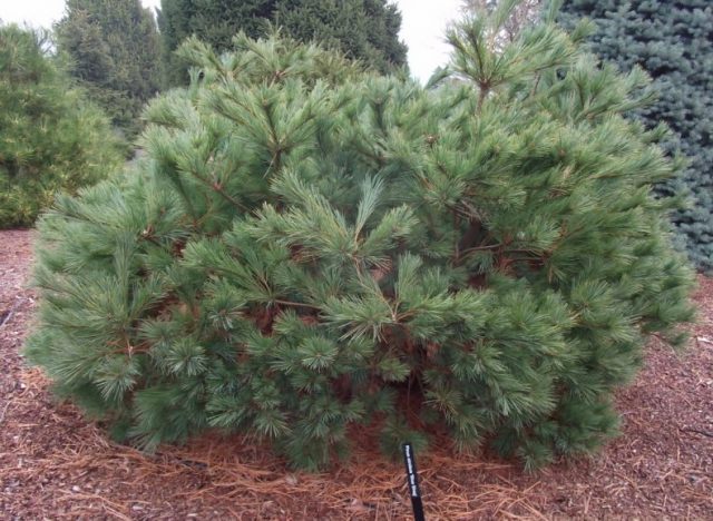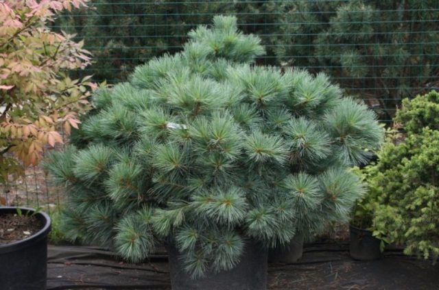 Una variedad algo similar, que también se conoce como pinos azules, debido al color correspondiente de las agujas. No supera los 1,5 m de altura y tiene una forma de corona esférica casi perfectamente regular. Las ramas crecen densamente, la tasa de crecimiento anual alcanza los 7-8 cm.