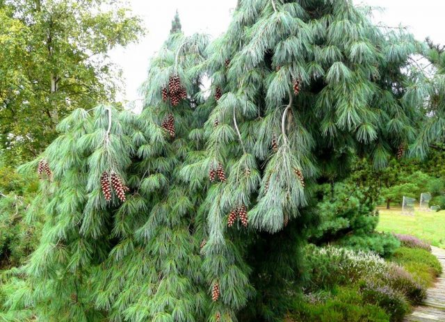 Los árboles pueden alcanzar una altura de dos metros, mientras que la tasa de crecimiento es significativa, hasta 20 cm por año. Habiendo plantado un árbol joven de Pendula, después de unos años se pueden admirar las exquisitas formas llorosas de este pino de Weymouth.