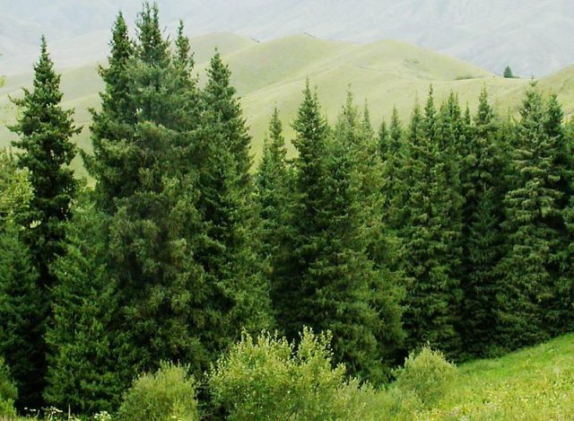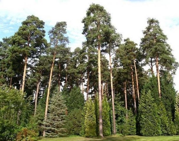 Habiendo estudiado las características del abeto y el pino, puede distinguir fácilmente entre estas dos especies de árboles en la foto.