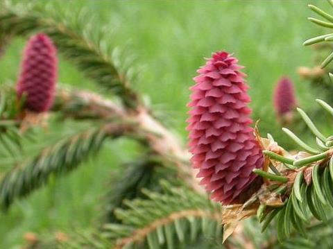 Los conos de abeto hembras, por otro lado, son muchas veces más grandes que los machos: se pueden reconocer fácilmente por su color rojo brillante. También se ubican en las puntas de las ramas, solo en la parte superior de la copa. Pero los conos de abeto macho no pueden presumir de un color brillante y un tamaño grande.