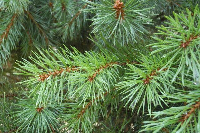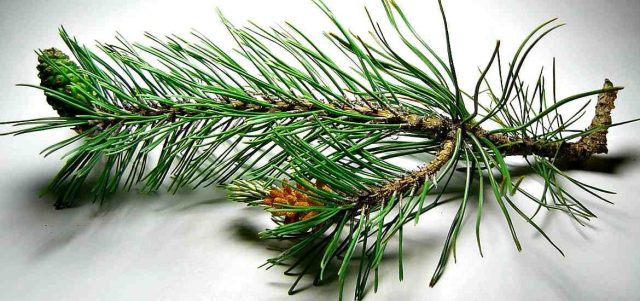 Las agujas de pino, a diferencia de las agujas de abeto, tienen una estructura más suave y se estrechan hacia el final. En las ramas, se ubican en pares y alcanzan de 4 a 6 cm de longitud.