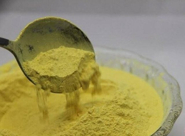 - tome un frasco de vidrio pequeño y vierta una capa densa de polen de pino en su fondo;