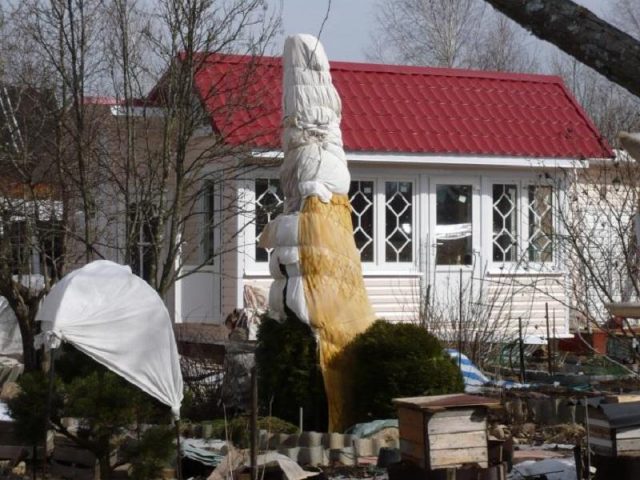 Después de la siembra de otoño, es necesario un refugio cuidadoso de las coníferas. El propósito de la protección es prevenir la activación prematura de la corona, cuando las raíces en suelo congelado no pueden suministrar humedad a las agujas. En este caso, las quemaduras de coníferas están garantizadas.
