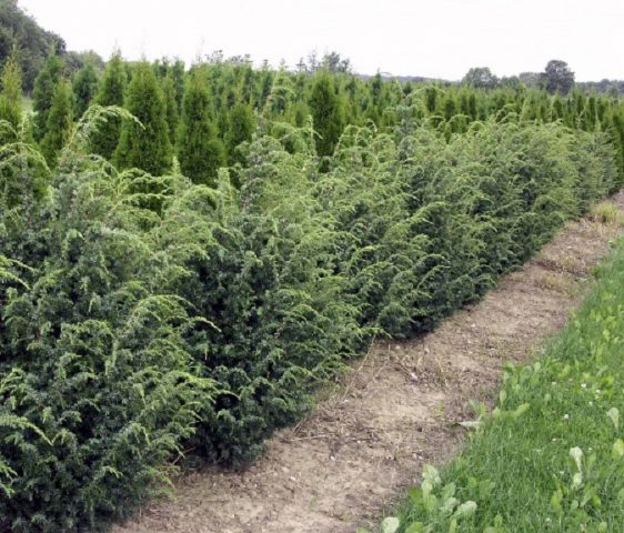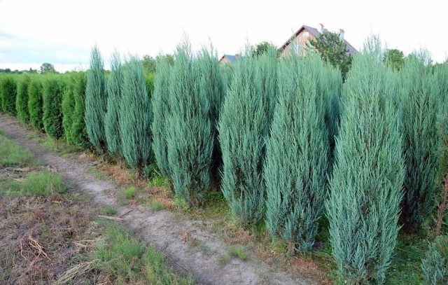 Ahora, bajo el mismo nombre, diferentes fabricantes venden árboles con una copa exuberante piramidal o columnar estrecha, más allá de la cual a menudo sobresalen ramas individuales. Esto hace que el enebro parezca más ancho de lo que es.