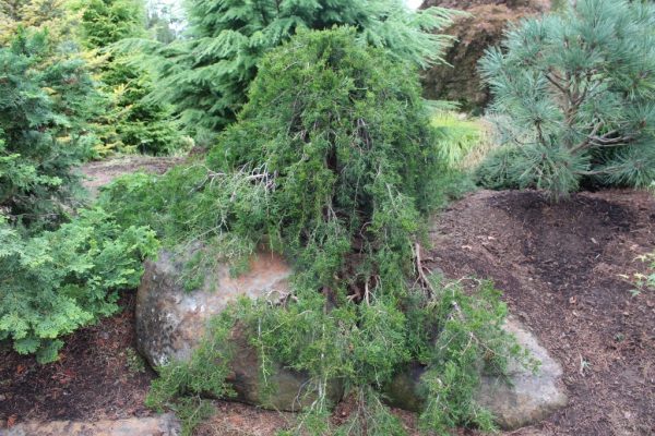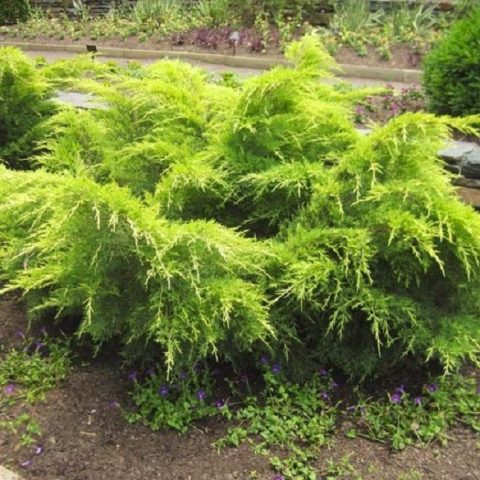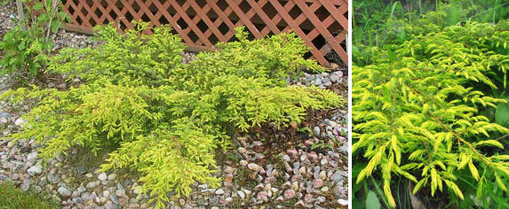 Uno de los más hermosos con una corona extendida es el híbrido Juniperus x pfitzeriana Old Gold. Fue creado sobre la base del enebro de Aurea medio en 1958, que es similar, pero crece lentamente, agregando 5 cm de altura y 15 cm de diámetro por temporada.
