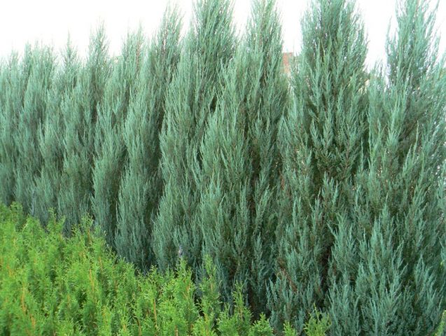 Una de las variedades más populares, Juniperus scopolorum, Blue Arrow o Blue Arrow, fue criada por criadores estadounidenses en 1949. Se caracteriza por una corona estrecha en forma de cono, brotes densamente crecientes levantados.