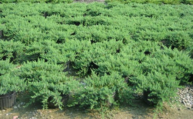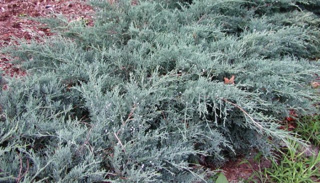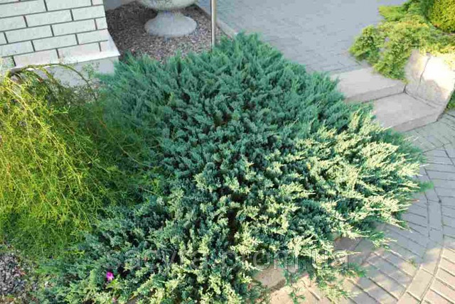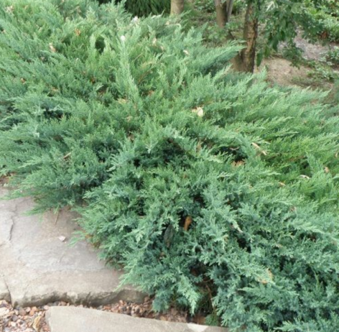 El Juniperus conferta Blue Pacific de crecimiento lento y resistente a las heladas a veces se llama enano, pero esto no es correcto. Es pequeño solo en altura, unos 30 cm por encima del nivel del suelo. En ancho, Blue Pacific crece 2 mo más.