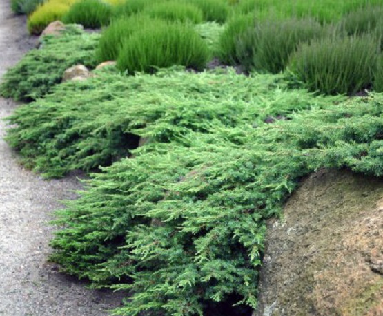 - arbusto con ramas largas que se extienden por el suelo, por ejemplo, enebros horizontales y recostados;