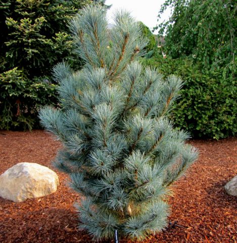 El nuevo Pinus peuce Pacific Blue pasa el invierno en la zona 4 y se puede cultivar en la mayor parte de Rusia. Este pino de Rumelia da un crecimiento anual de más de 30 cm. Un árbol adulto alcanza una altura de 6 m con un diámetro de copa de 5 m. Una planta joven, en la que las ramas inferiores no tuvieron tiempo de pasar al plano horizontal, es mucho más estrecho. Las agujas son delgadas, de color azul brillante.