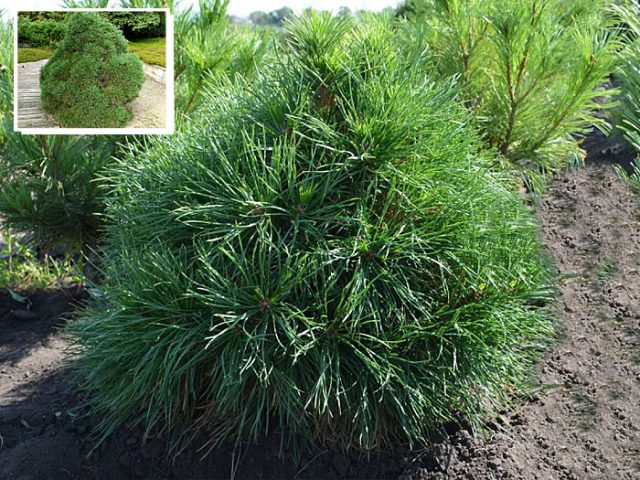 Pinus sylvestris Globosa Viridis - una variedad muy extendida, conocida desde 1900. Forma enana con ramas cortas, densas y duras que cuelgan hasta el suelo. Da un crecimiento anual de 2.5 a 15 cm. A la edad de 10 años, la altura no es más de 1-1.5 m, puede ser significativamente menor. El tamaño depende de las condiciones de crecimiento y del vivero. El pino silvestre es una especie versátil, y si los productores se dedican a su propia selección, esto afecta la altura del árbol.