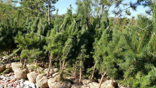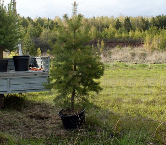 Los pinos deben comprarse en contenedores o con un trozo de tierra revestido de arpillera. En cualquier caso, el sistema raíz debe estar cerrado.
