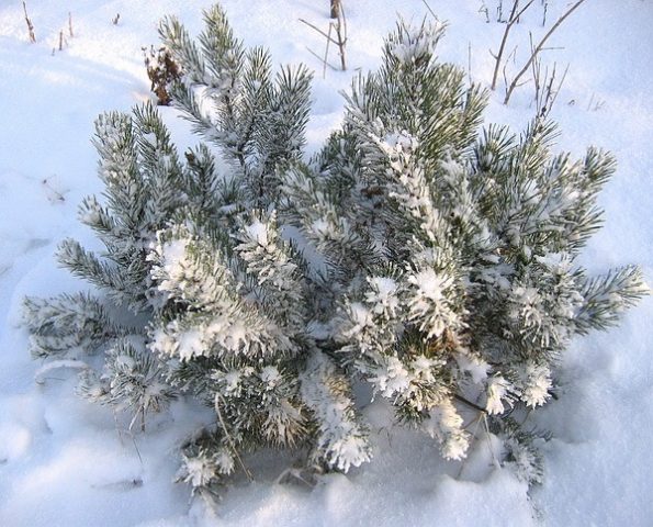 Al plantar pino silvestre en la zona recomendada de resistencia a las heladas, debe cubrir el árbol solo en el año de la siembra. En temporadas posteriores, se limitan al acolchado del suelo. La capa debe tener al menos 10 cm.