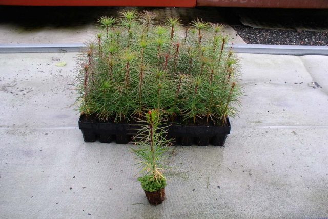 La raíz puede romperse al excavar plántulas, si no es demasiado corta, no da miedo. Pellizca dependiendo de la profundidad del recipiente. Puede dejarlo como está, o 5-7 cm en una plántula de 3-4 cm. Con un pico bien hecho, la tasa de supervivencia es del 80% o más. Para el pino silvestre, este es un resultado excelente.