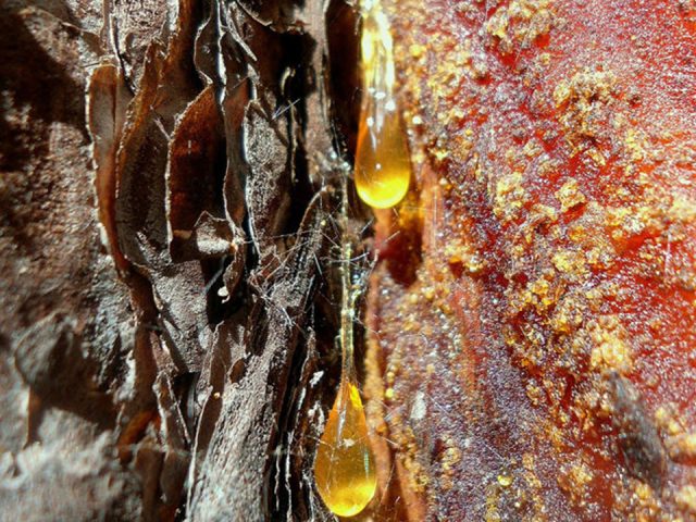 Las valiosas propiedades de la resina de pino se conocen desde hace muchos siglos: para el tratamiento de enfermedades internas y lesiones externas, la resina se usaba en la antigüedad. El beneficio de la resina de pino es que: