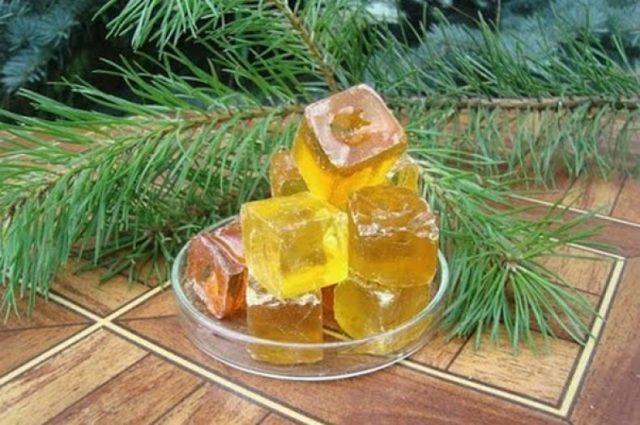 Además de las recetas para uso externo, existen formas de tratar la resina de pino internamente. La composición natural de la resina pura es completamente inofensiva para la salud, aunque, por supuesto, debe usar resina en pequeñas cantidades.
