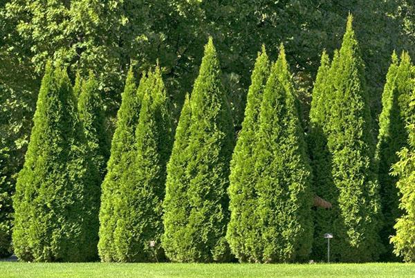 Al plantar una tuya doblada para un seto, recuerde la distancia entre las coníferas: debe estar dentro de los tres metros. Formando un callejón, el espacio entre plantas se incrementa de cinco a seis metros.