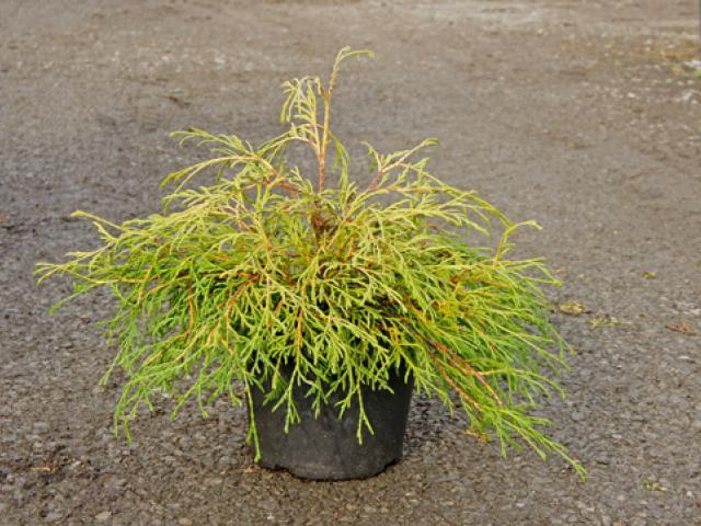 Es mejor comprar esta variedad de thuja doblada en una maceta: luego la planta se puede plantar sin agregar fertilizantes adicionales de marzo a diciembre, incluso en el período más caluroso del verano.