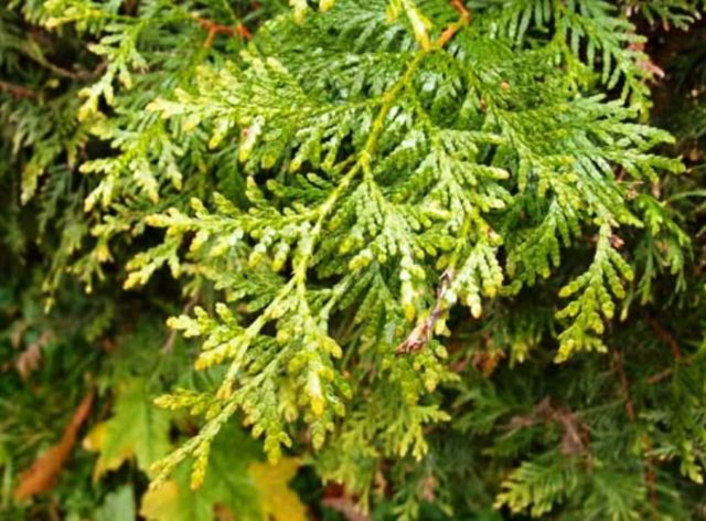 Descripción de la planta: Thuja plegada Gelderland es un árbol de hoja perenne con agujas en miniatura que pueden cambiar de color: en verano son de un verde intenso, que en invierno cambia a amarillo brillante. A menudo, este tipo de thuja se usa en plantaciones grupales, para decorar un patio o balcón (cuando se cultiva en una maceta). En la edad madura, el árbol alcanza los 4,5 m de altura.
