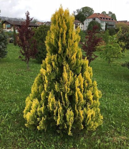 Representante de la familia Cypress, la thuja occidental se convirtió en la progenitora de numerosas variedades de reproducción creadas para la jardinería ornamental. Thuja Yellow Ribbon es la variedad más demandada con un color exótico de agujas. Debido a su alta resistencia al invierno, la planta ornamental se utiliza en el diseño del paisaje en todas las zonas climáticas de Rusia.