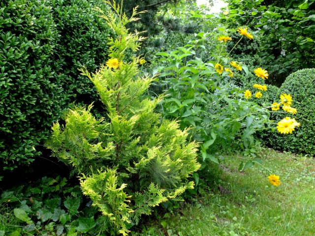El uso de thuja Yellow Ribbon en el diseño del paisaje.