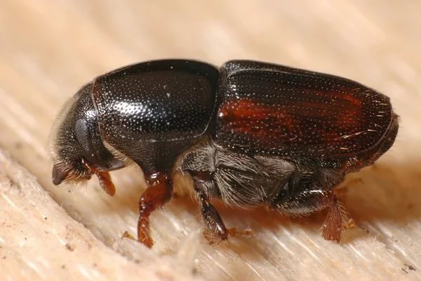 Albura | Estos son insectos pequeños (4 mm) de color marrón oscuro que dañan la corteza y las ramas. | Los árboles se rocían con clorofos o metafos. | |