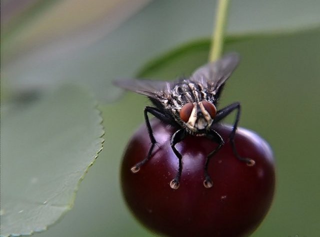 Es gracias a la actividad de la mosca de la cereza que las cerezas pueden desprenderse de los frutos sin razón aparente. Las orugas de esta plaga son gusanos blancos diminutos, casi invisibles a la vista. La plaga es especialmente peligrosa para las variedades medias y tardías de cereza dulce.