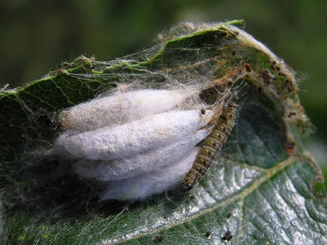 Esta plaga puede construir nidos enteros de telarañas en las cerezas. Las orugas comen la carne de las bayas y las hojas hasta las venas. Para la lucha, se utilizan drogas Iskra-M, Pyriton. Para un árbol adulto, el consumo de la droga es de 3-4 litros.