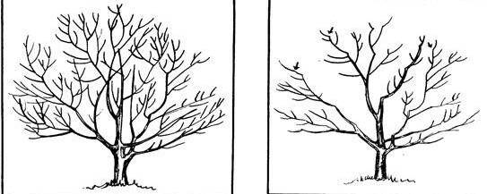 En la primavera, antes del inicio del flujo de savia y la hinchazón de los cogollos, se forma la corona de la cereza Diaber Black. Esta cultura se forma en 2 niveles: en el primero, quedan alrededor de 8-9 ramas esqueléticas, en el segundo, 2-3 capas. El tallo central de la planta en la edad adulta se corta a una altura de 3,5 m para limitar el crecimiento del árbol. También en la primavera, se realiza una poda sanitaria: eliminación de todas las ramas dañadas y congeladas en el anillo.
