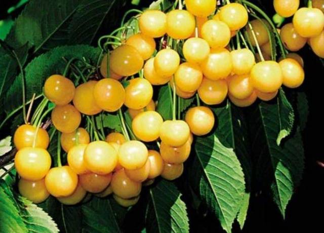 Cerezas El ámbar pertenece a la categoría de plantas de gran tamaño. La característica principal de esta variedad es el color brillante del fruto, amarillo ámbar.