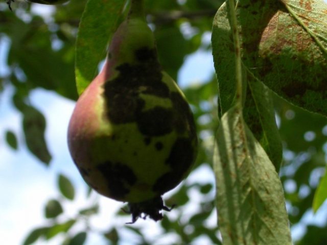 La belleza de Pear Bryansk se distingue por una alta inmunidad, rara vez afectada por infecciones. En veranos fríos con abundantes lluvias, pueden aparecer costras en hojas y frutos. Antes de la floración, la pera se trata con sulfato de cobre, después de que la fruta se ata con "Raykom", "Gamair". De las plagas, el ácaro de la hiel es una amenaza. Para prevenir el comienzo de la primavera, las hojas jóvenes y los brotes se rocían con "Decis" o "Inta Virom". Después de florecer con azufre coloidal.
