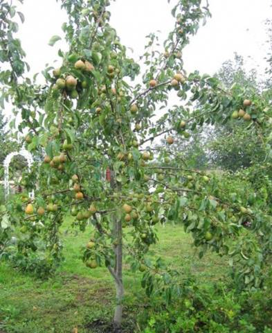 Los árboles de esta variedad de pera son de tamaño mediano, alcanzando una altura de 3-4 metros. La densidad de la copa también es media, la propia corona tiene forma de cono. Las ramas crecen muy raramente, sus puntas están ligeramente dobladas hacia arriba. La corteza de las principales ramas esqueléticas y del tronco es lisa y de color gris. Los brotes más jóvenes son de color marrón rojizo, ligeramente pubescentes.