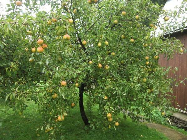Al crecer, las ramas de la hermosa pera Klappa comienzan a colgar, formando una corona más redonda. Un árbol adulto se caracteriza por: