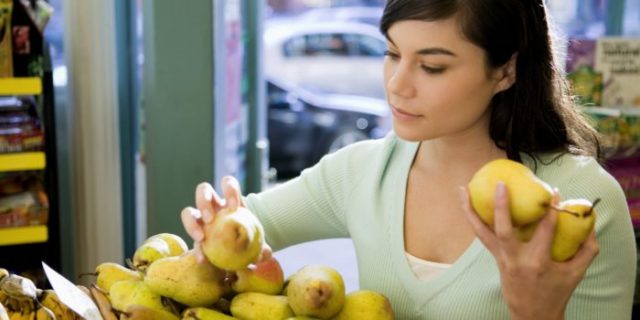 Al elegir una pera, en primer lugar, se presta atención a su madurez y falta de deformación. La fruta se recoge inmadura del árbol. Alcanza el estado deseado durante el transporte.Por lo tanto, las peras verdes se encuentran a menudo en los estantes. No debe negarse a comprarlos. La fruta también puede madurar en casa. Debe dejarse en el alféizar de la ventana durante varios días. Es mejor no tomar frutas demasiado maduras.