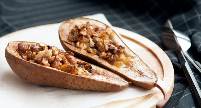 - Las peras deben enjuagarse bien y cortarse por la mitad.