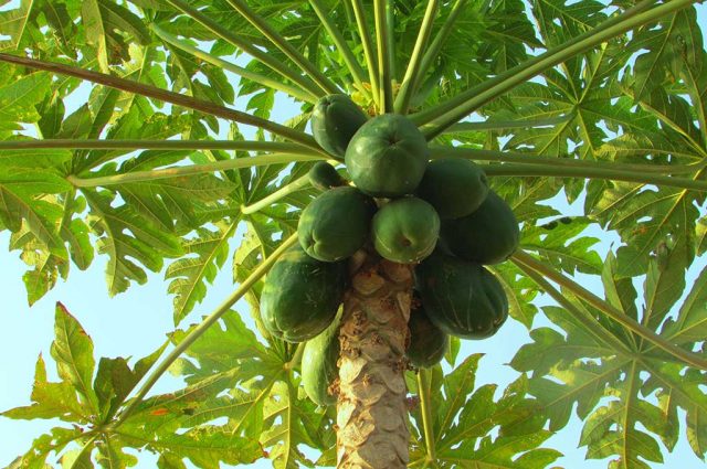 La papaya comienza a dar frutos dentro de los 6 meses posteriores a la germinación, por lo que a menudo se le llama el árbol del jardinero impaciente. En el clima tailandés, que es el más favorable para el cultivo, se consume durante todo el año, ya que los cogollos se cuajan constantemente y la maduración no está ligada a las estaciones.