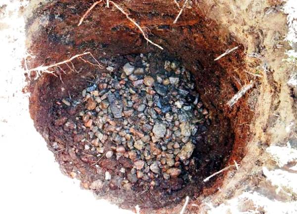 - La presencia de agua subterránea en un lugar nuevo no debería ser alta. Si el problema no se puede resolver debido al hecho de que no hay otro lugar en el sitio, tendrá que ocuparse del sistema de drenaje. Para el drenaje, puede utilizar piedra triturada, ladrillo, piedras o tablones picados. Además, esta almohada se coloca antes de llenar el compost.