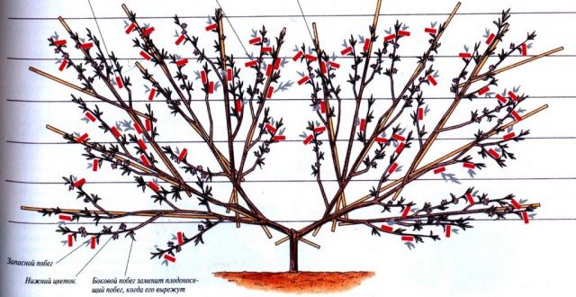 Se recomienda observar el intervalo entre árboles de hasta 4-5 m El esquema de plantación de melocotón establece que las formas de la fruta estén separadas entre sí por una distancia igual a la suma de la altura de su copa. Luego, las plantas utilizan libremente los nutrientes del suelo. Los métodos intensivos de cultivo de cultivos implican una plantación compactada seguida de una nutrición activa de los árboles con preparaciones minerales.