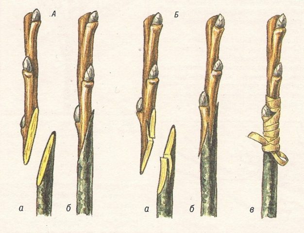 La tasa de supervivencia se puede aumentar con la ayuda de una mejor cópula. En este caso, el corte oblicuo del corte y la culata no se hace recto, sino en zigzag. Esto permite una fijación más rígida del esqueje en el sitio del injerto y también aumenta el área de contacto del cambium con el patrón y el vástago.