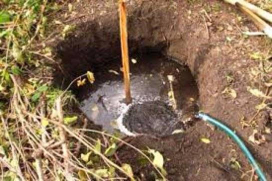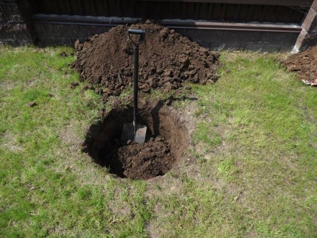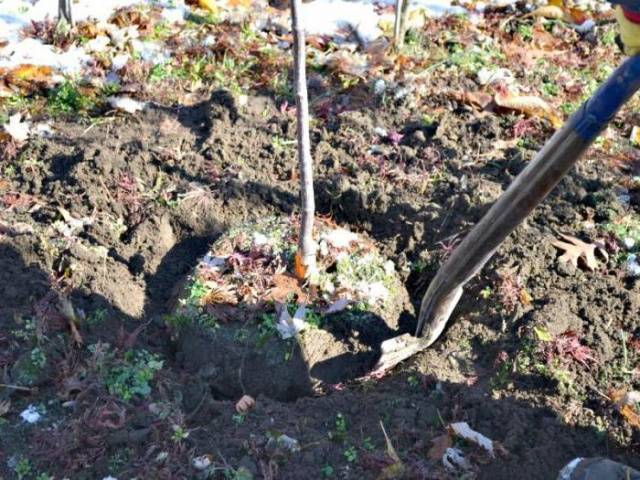 - Se cava un hoyo para plantar árboles en la primavera de 0,8 m de profundidad, aproximadamente 1 m de ancho.